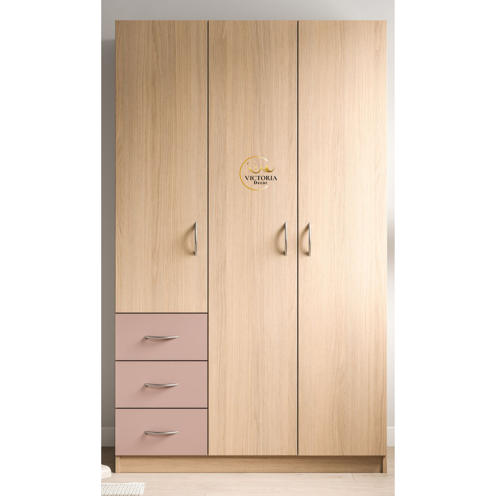 Compact 3-Door Wardrobe with drawers with plywood finish