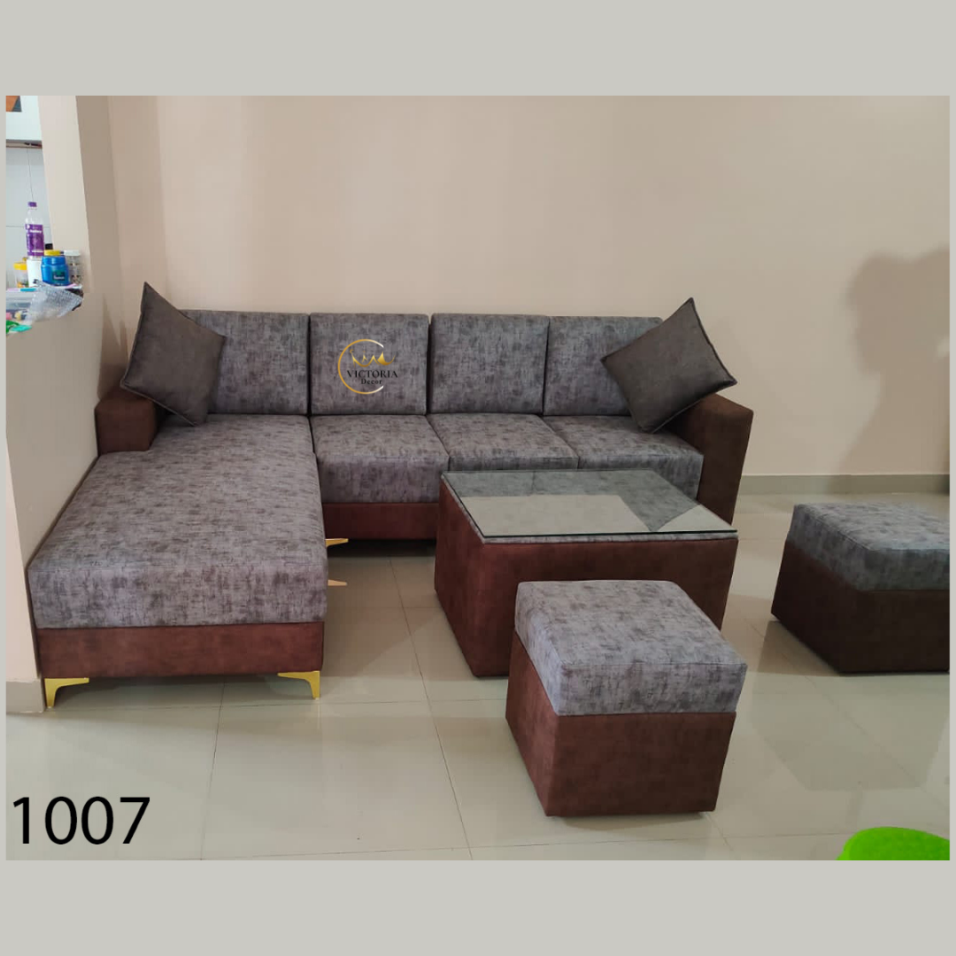 6-seater L-shaped sectional sofa in textured maroon & grey, built with durable BWP/BWR plywood and cushioned with 40-density foam for lasting comfort.