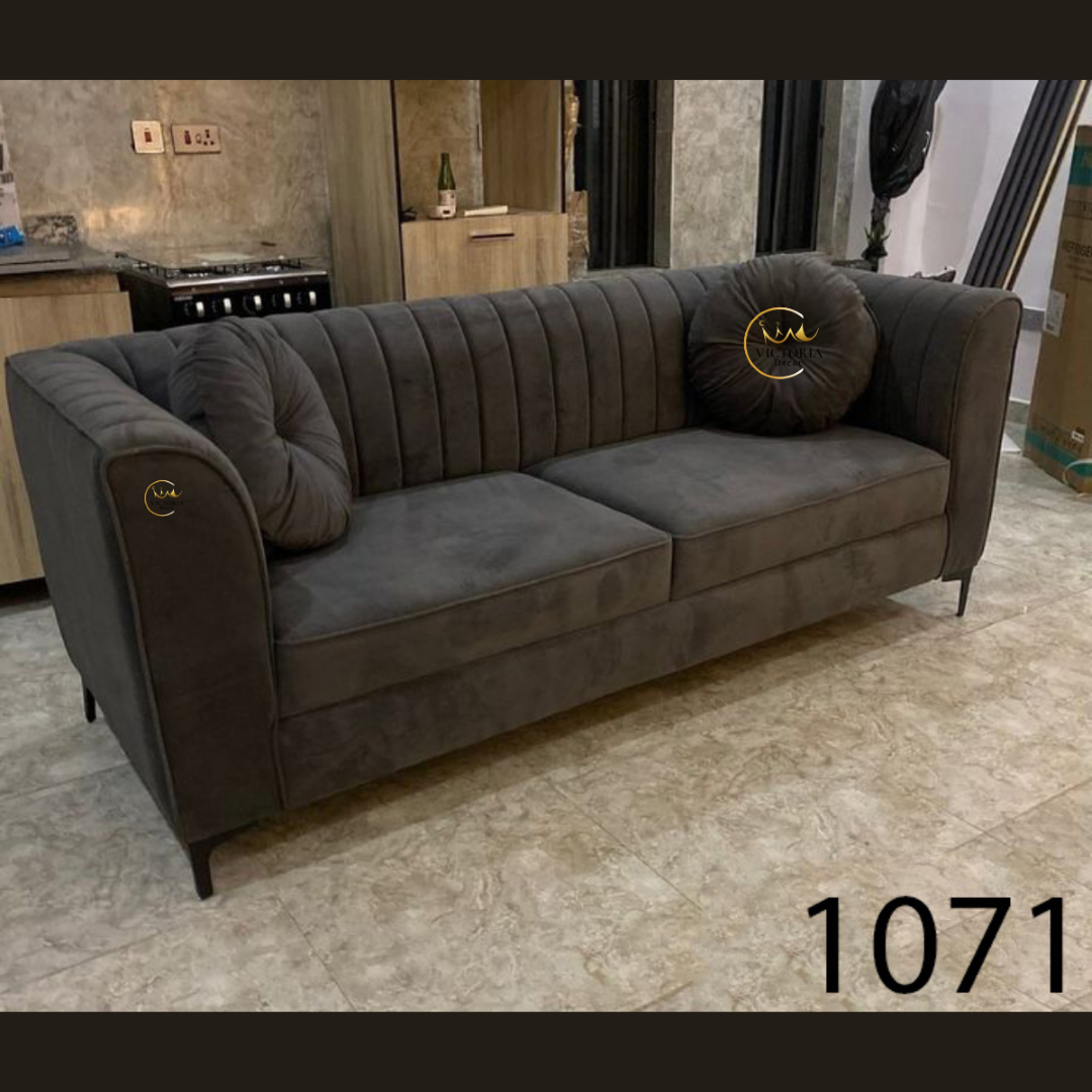 This is a stylish 3 seater modular sofa upholstered in a textured black.